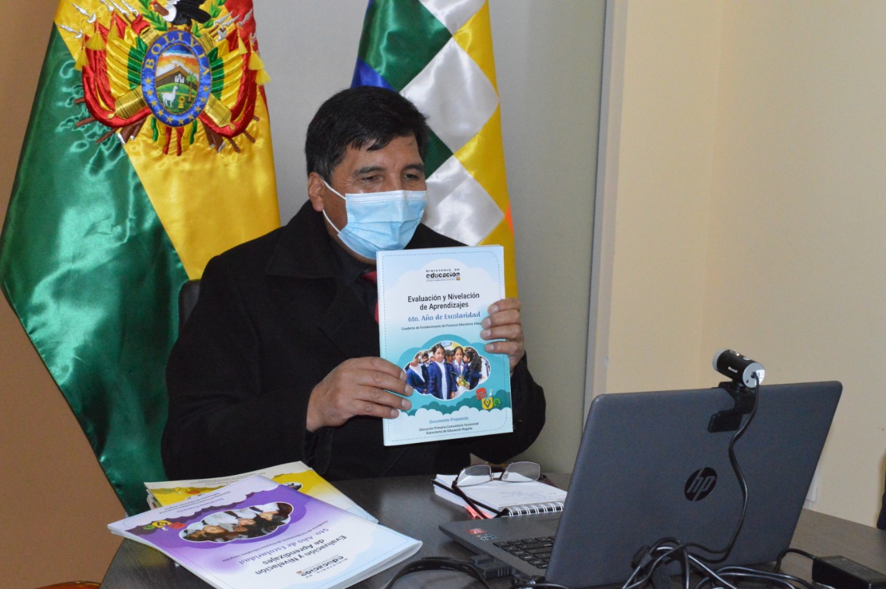 El titular de Educación recordó que la estrategia del Ministerio de Educación se basa también en otros componentes como ser las clases transmitidas por radio y televisión, mediante Educa Bolivia, las que son difundidas por los medios de comunicación del Estado, además de canales de Tv y radio privados.