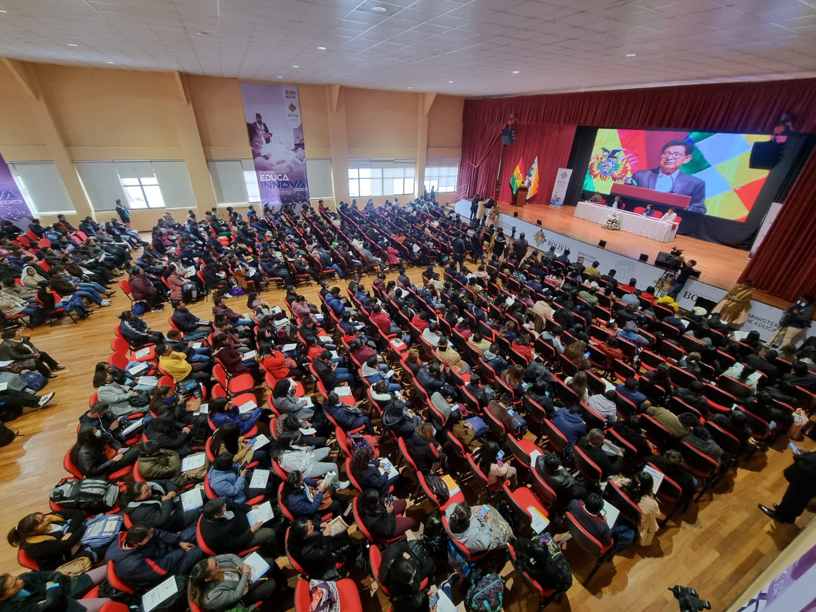 La Paz, 24 de noviembre de 2023 (Unicom – Minedu).- El ministro de Educación, Edgar Pary Chambi, inauguró hoy la fase nacional del IX Encuentro Plurinacional de Maestras y Maestros "Educa Innova 2023", que logró la participación de 6.595 maestras y maestros, de los que 72 fueron clasificados para competir por los primeros lugares del certamen organizado para docentes del Sistema Educativo Plurinacional.