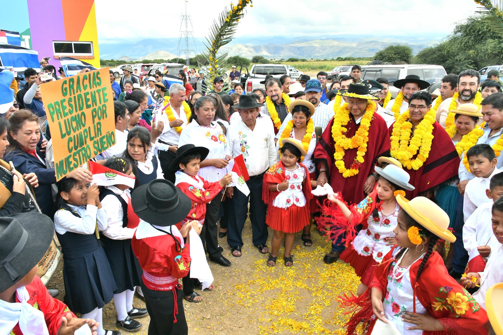 “El Gobierno Nacional hace posible que sigamos entregando obras, pese al boicot económico de la Asamblea Legislativa. Hoy venimos a entregar cinco obras para el pueblo tarijeño. Nuestro compromiso es seguir trabajando, porque las necesidades del pueblo boliviano no esperan”, expresó el Jefe de Estado, durante el acto de colocado de la piedra fundamental e inicio de la construcción del puente vehicular de pavimento en Tomatitas, en el municipio San Lorenzo.