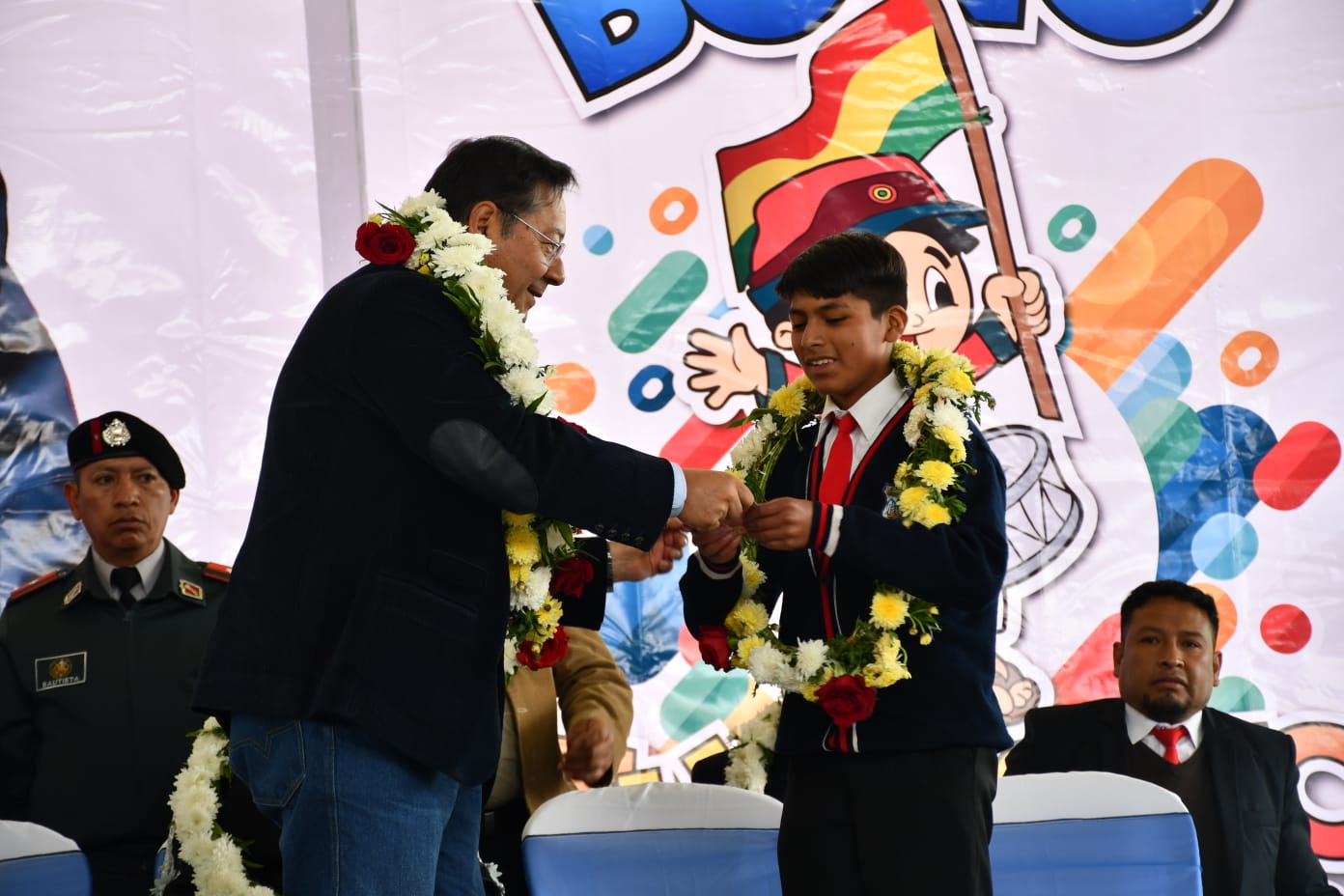 En esta oportunidad, los estudiantes Analí Callaguara Coa, de 3º de primaria, y William Colque Condori, de 2º de secundaria, fueron los primeros en recibir el incentivo de 200 bolivianos de manos del Presidente del Estado Plurinacional de Bolivia.